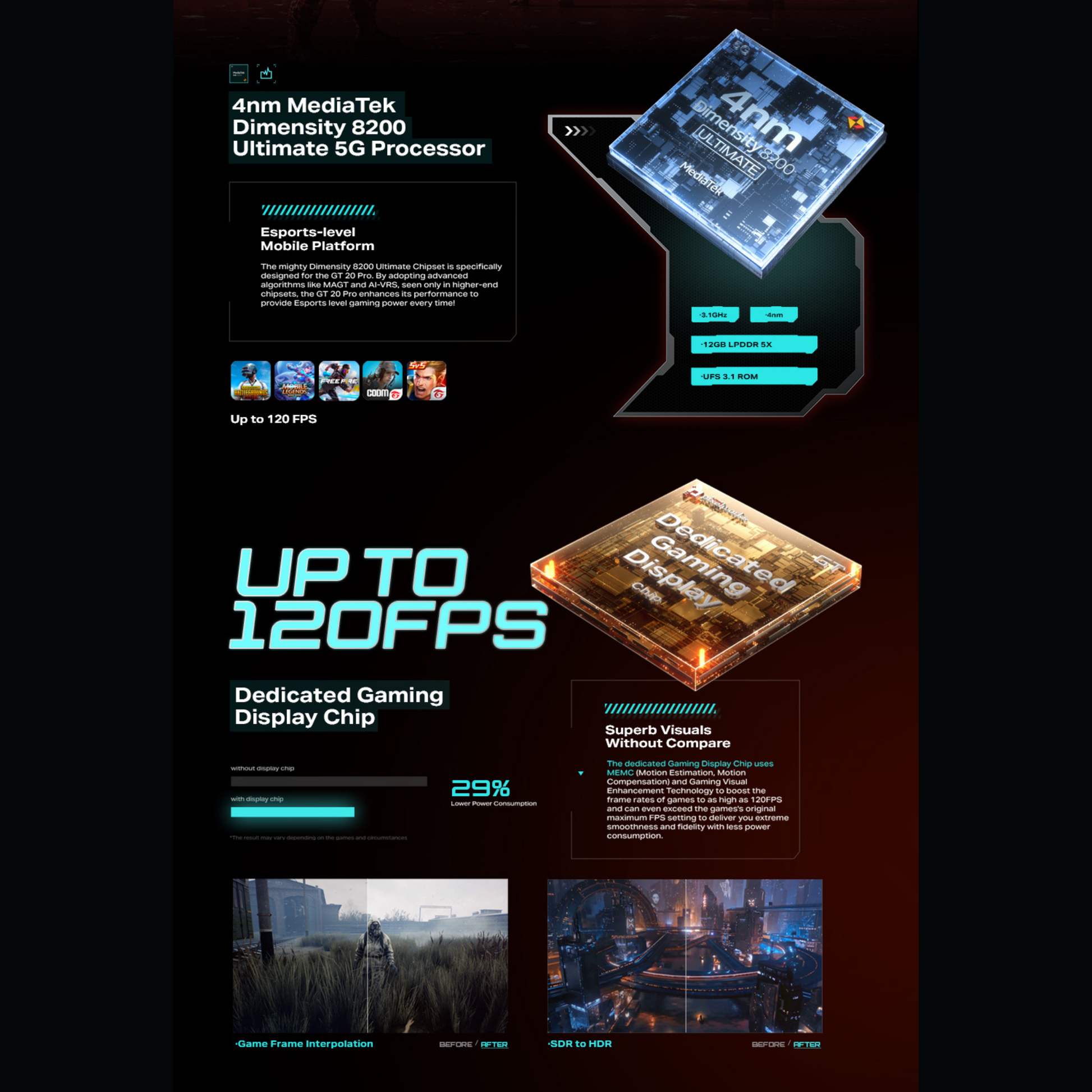 | Processor | MediaTek Dimensity 8200 Ultimate, Octa-core (4nm), Mali-G610 MP6 GPU |